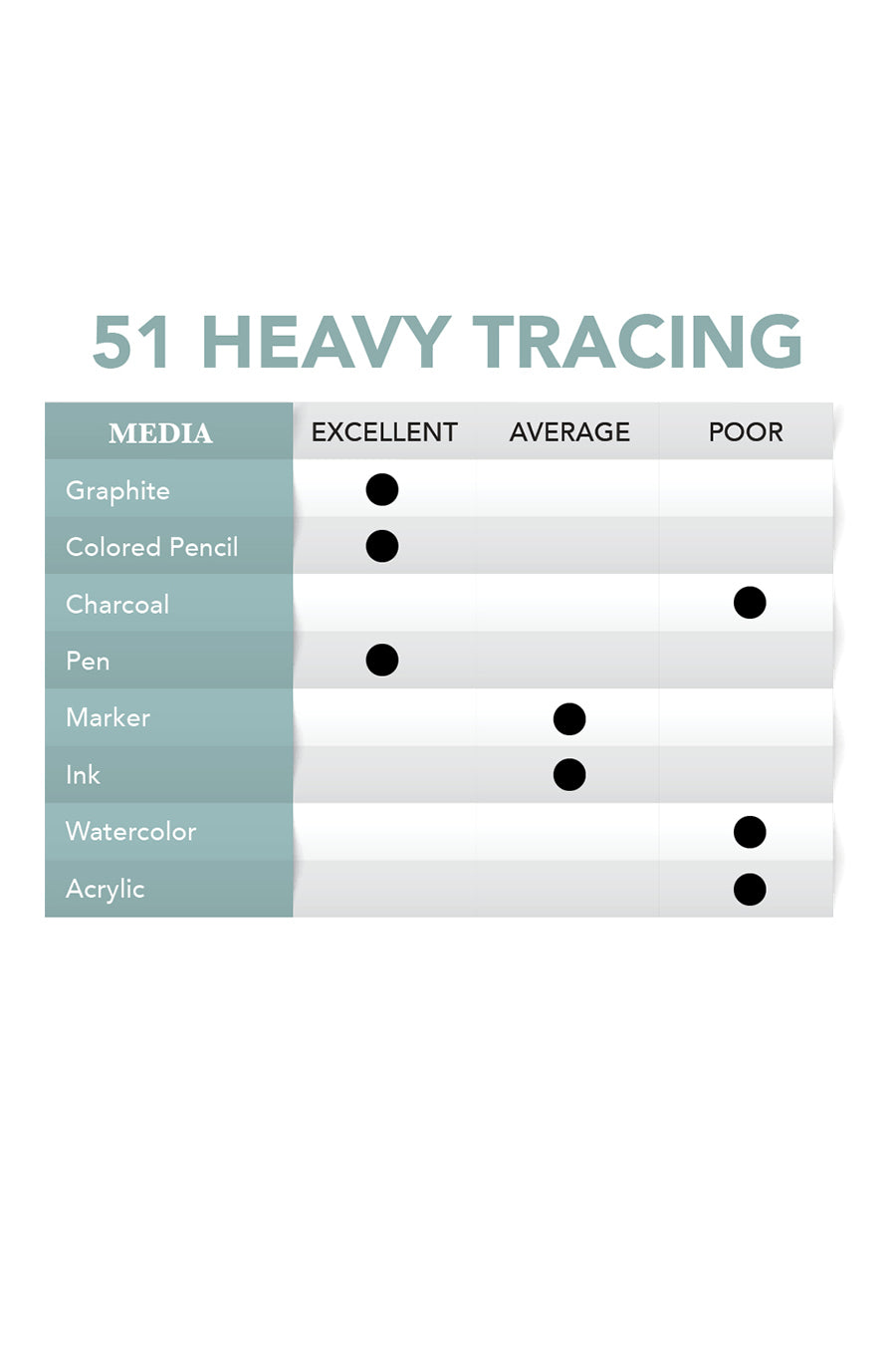 51H Tracing 11x14 Tracing Pad SKU - 51HP111450 Size - Creative Process: Stage 1 Concept. A heavy weight tracing paper compatible with inkjet, coper, and laser printers. Excellent for creating layouts, transfers, copies and other tracings with pencil and pen. Extremely durable, lending to use for sewing patterns. Erases without ghosting. Made in the USA.