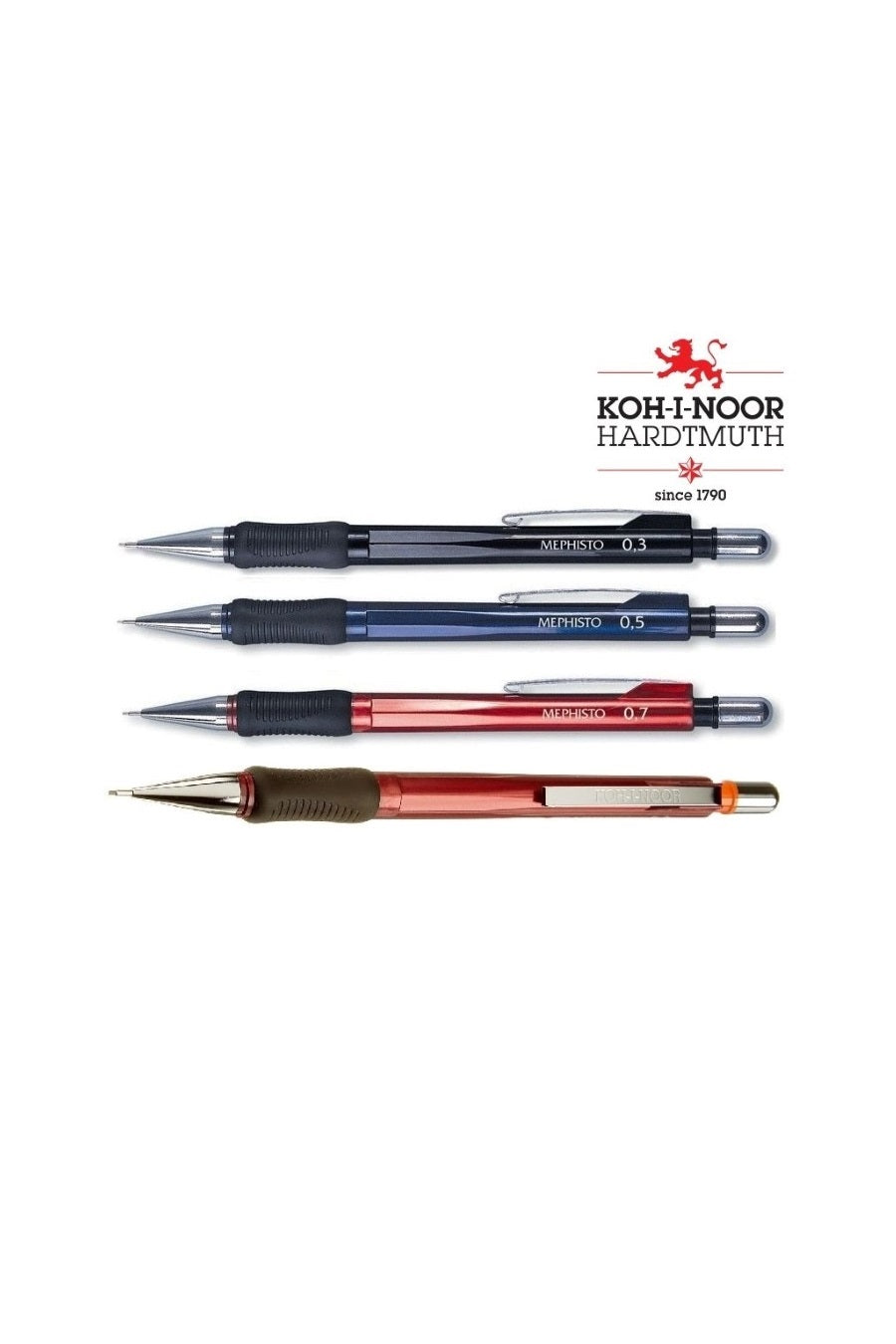 Mephisto mechanical pencils feature a well balanced, weighty feel and smooth lead feed. Excellent for precision work, the Mephisto comes in two lead widths .5mm and .7mm, and feature an easy to load, large capacity lead reservoir. Each lead size is made from premium quality Hardtmuth lead in a medium HB degree. Erasers are removable and replaceable and made from soft, smudge-free vinyl. Mephisto mechanical pencils feature a metal clip and color code indicator for size on the barrel.