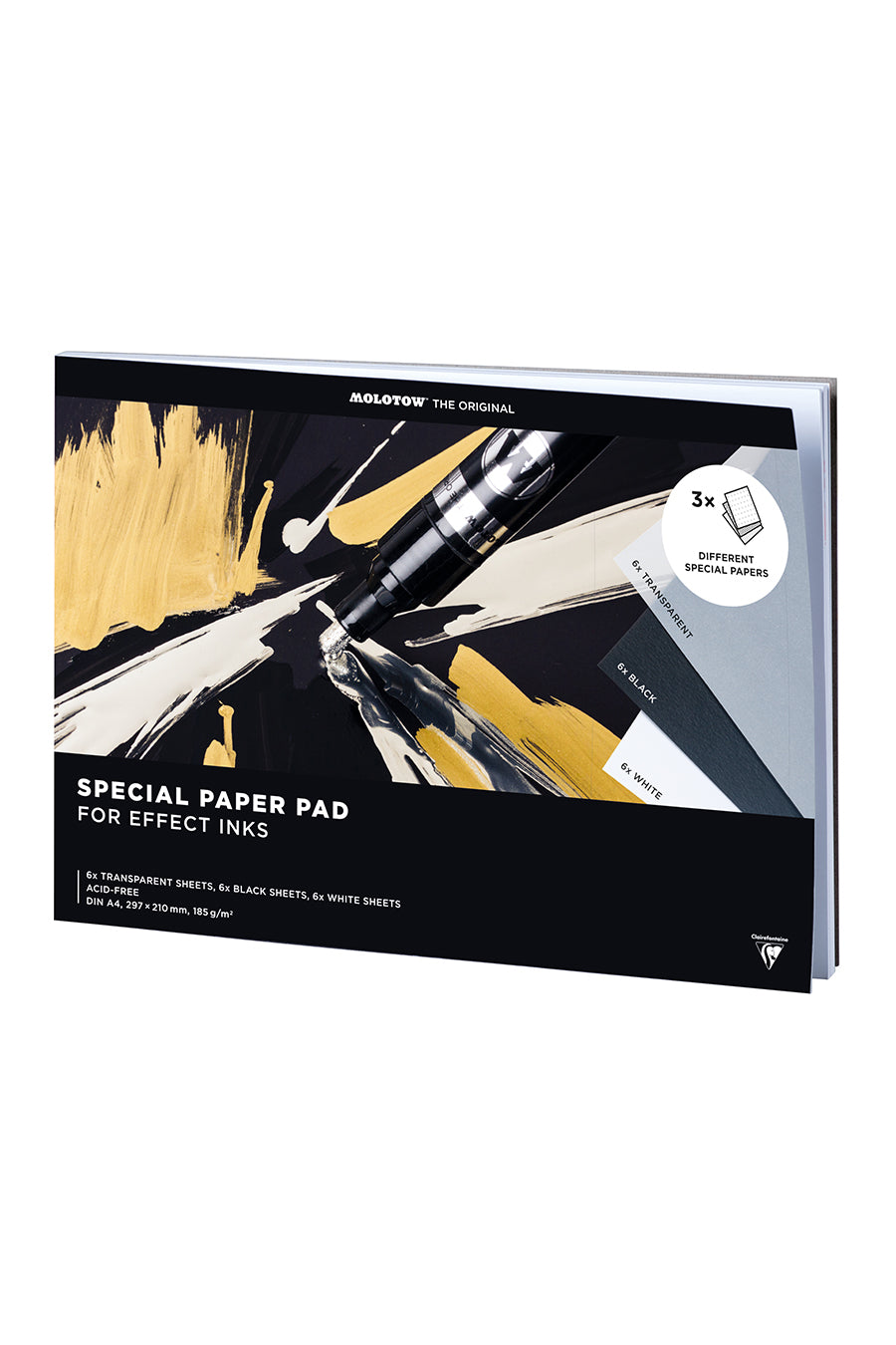 In particular, metallic colors come out perfectly on the special papers. This pad is perfectly suitable for MOLOTOW PERMANENT PAINT markers, ONE4ALL markers and LIQUID CHROME markers.