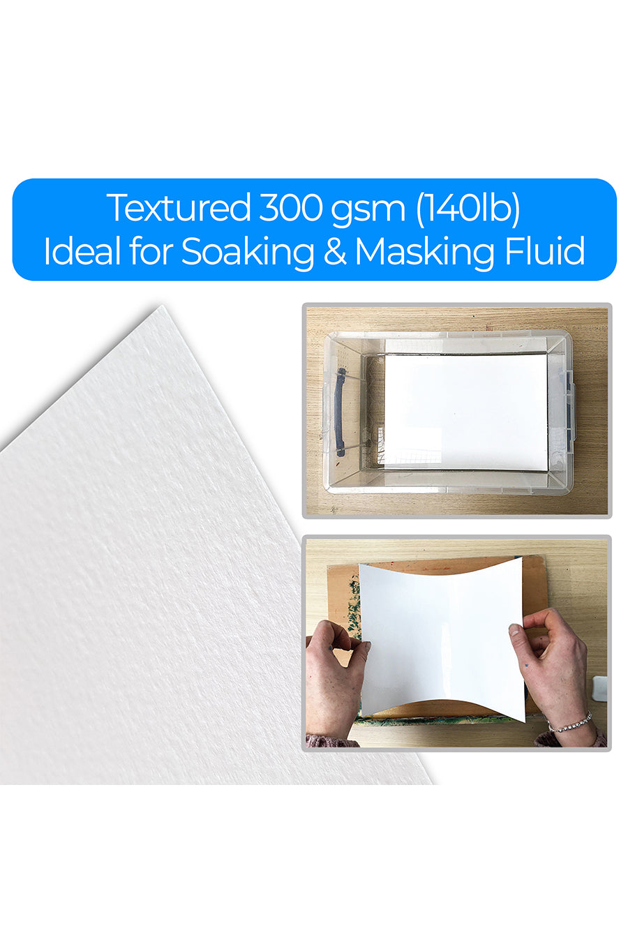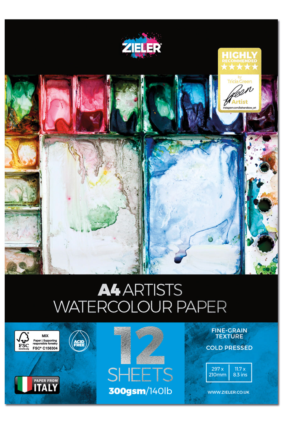 The A4 watercolour gummed pad by Zieler contains 12 sheets of lightly textured paper perfect for use with watercolour and gouache.