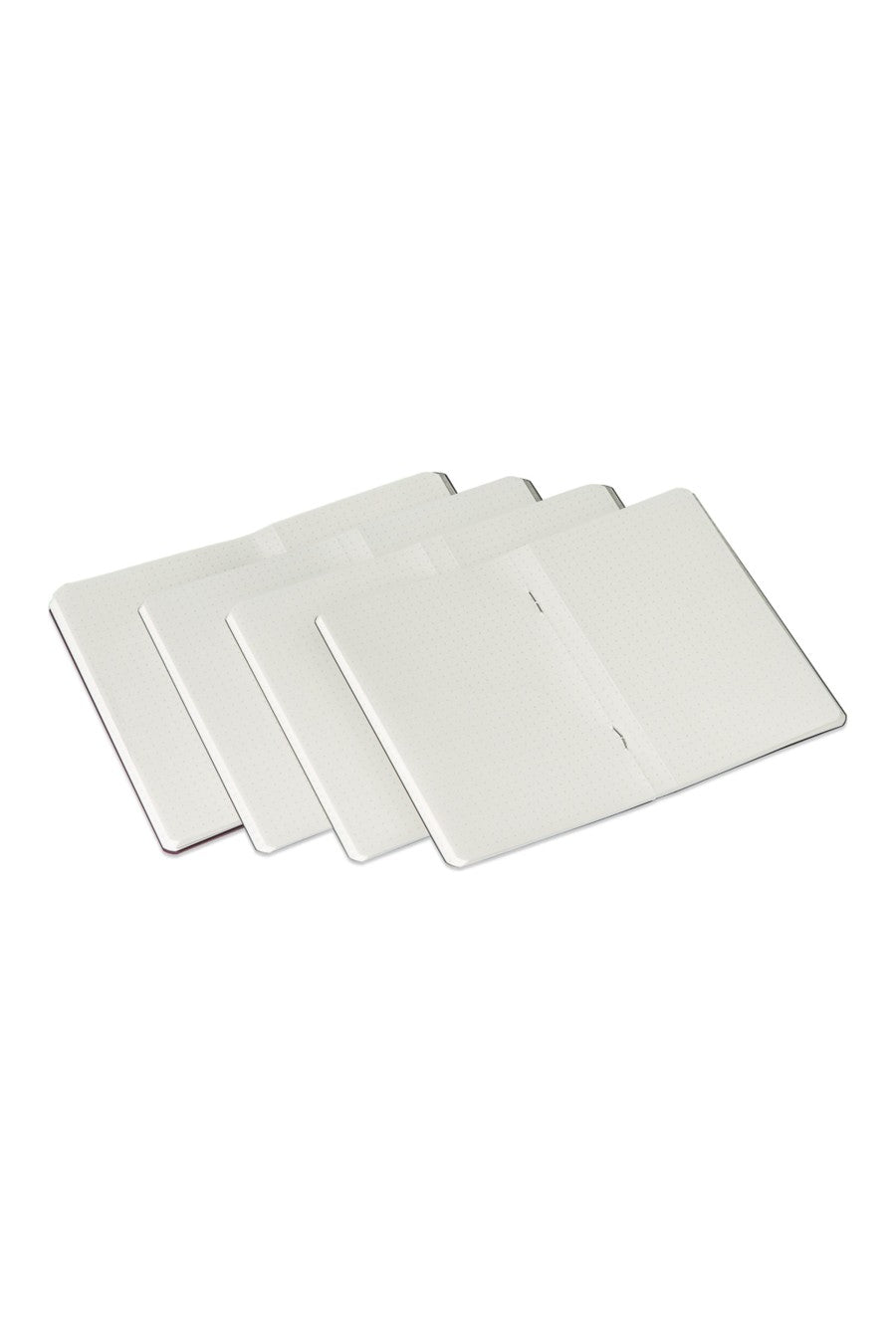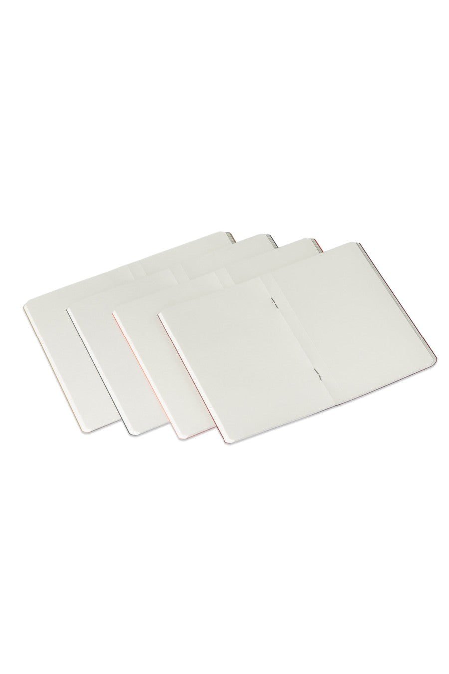 These notebook packs include four 3" x 5" staple-bound journals that are made in Italy of 57 lb. 90g/m2 Bioprima ivory shade paper. The paper is chlorine-free, acid-free and completely recyclable. They are ideal for writing and drafting with pencil, ballpoint pens, fountain pens and marker pens. The Winter Sets include wine, grey, black and navy.