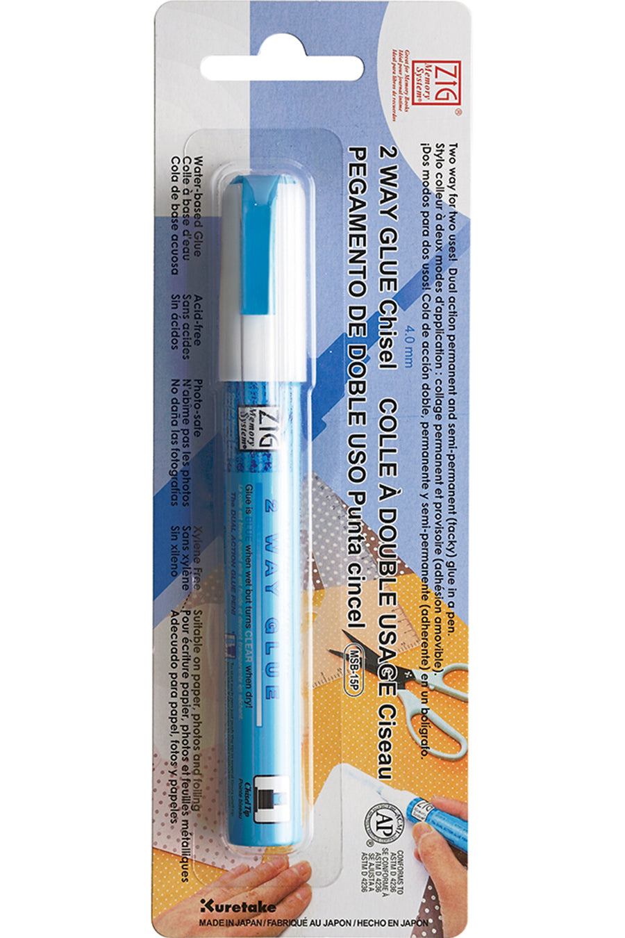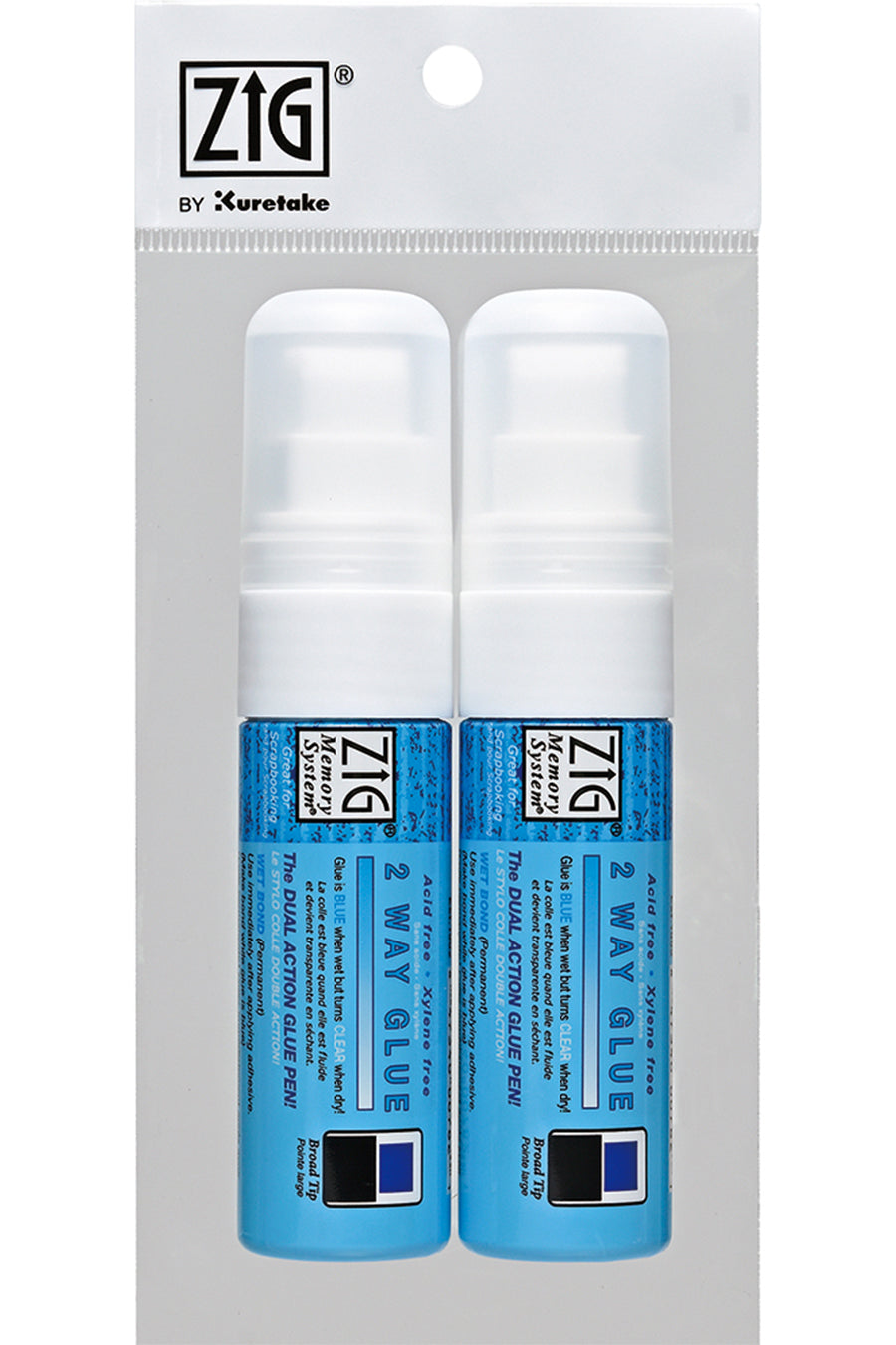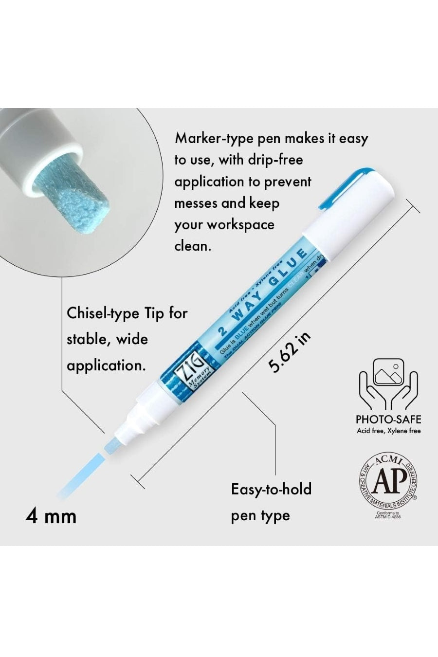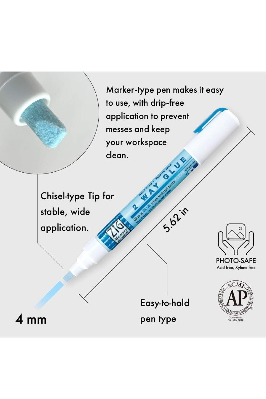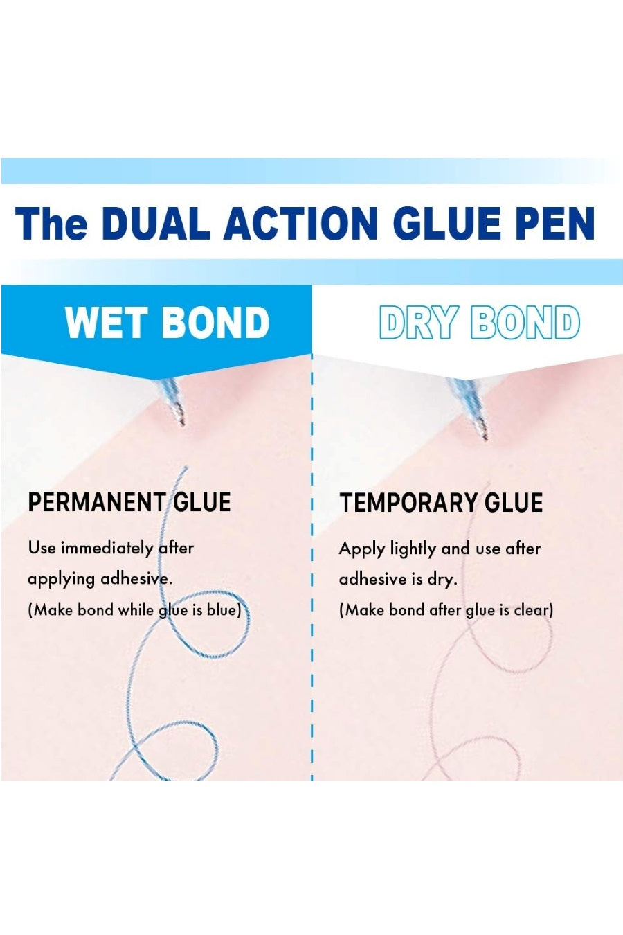 Each glue pen offers a permanent or temporary bond depending on the glue color. When BLUE, the glue creates a permanent bond. When it turns CLEAR, the bond will be temporary and repositionable. Glue lightweight items such as photos, ribbons, gems, and other embellishments to a wide range of paper, board, cardstock, and other porous surfaces.