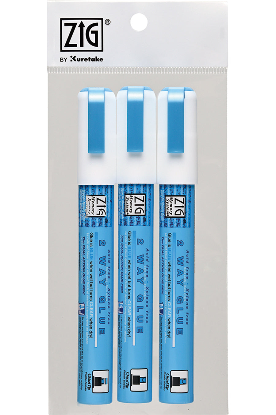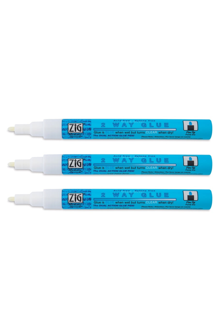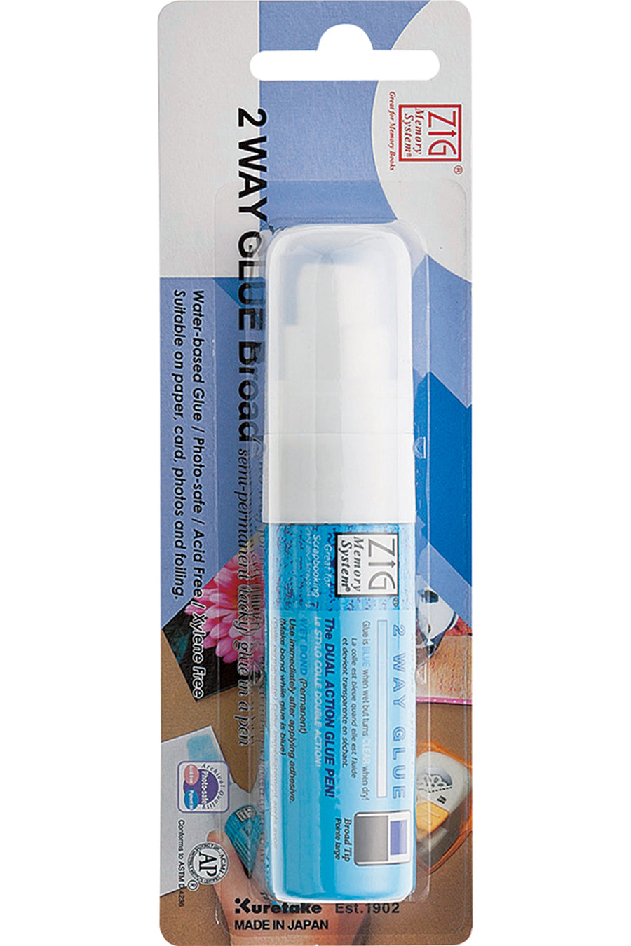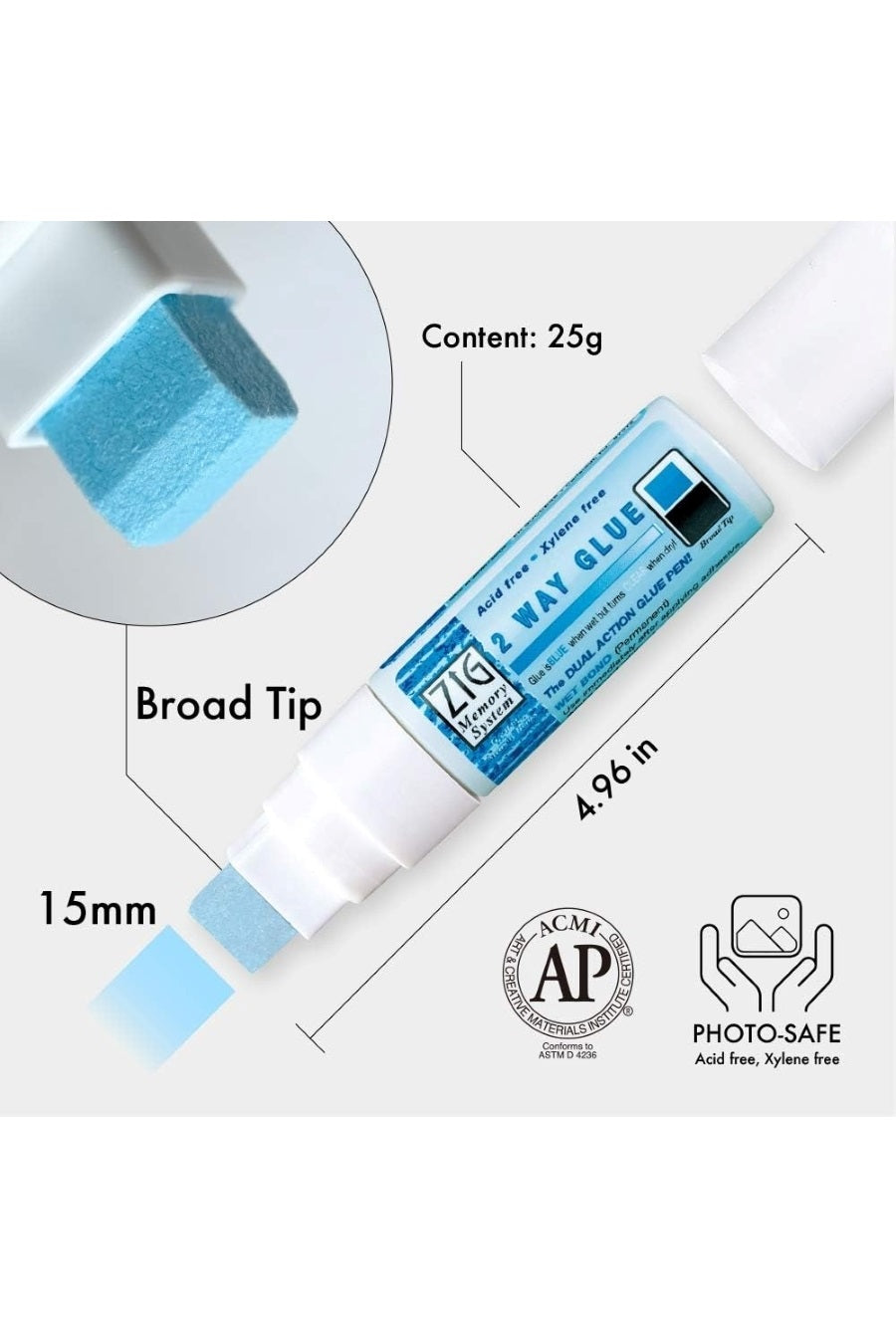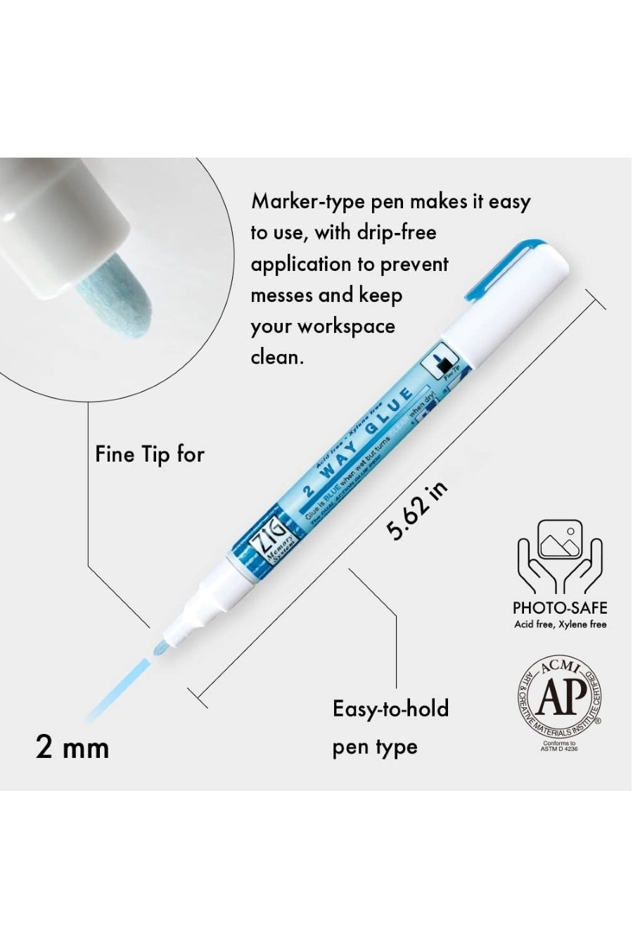 Each glue pen offers a permanent or temporary bond depending on the glue color. When BLUE, the glue creates a permanent bond. When it turns CLEAR, the bond will be temporary and repositionable. Glue lightweight items such as photos, ribbons, gems, and other embellishments to a wide range of paper, board, cardstock, and other porous surfaces.